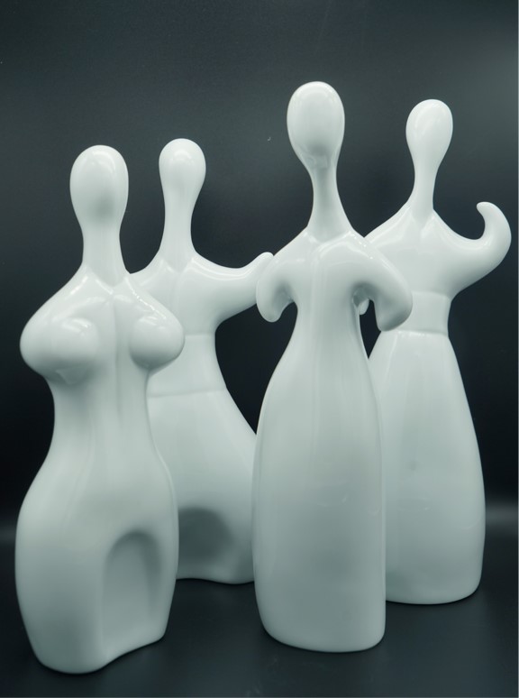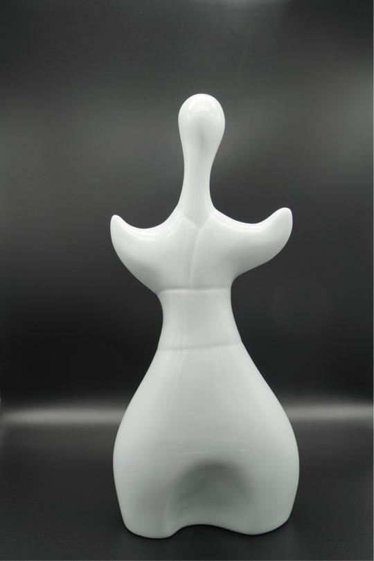 作品说明:笔者是一个对于历史有着浓厚兴趣的人,对于中国五千年传统文化尤为痴迷,因此在这次创作之中,就想挖掘中国传统艺术文化——陶俑文化,以陶瓷创作的形式,将陶俑造型重新展现出来,其中包括对历代陶俑动态的研究,服饰的变化,材质及釉色的使用变化等诸多方面的综合研究及应用。笔者想把传统的陶俑造型和高雅的德化白结合到一起,以德化中国白陶俑造型系列化作品呈现,用现代陶瓷专业本体语言表达,以此来进行陶俑造型文化的再创作。