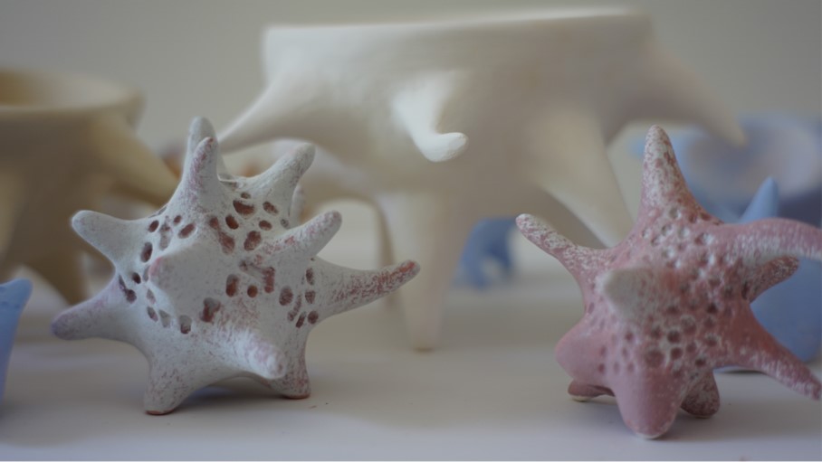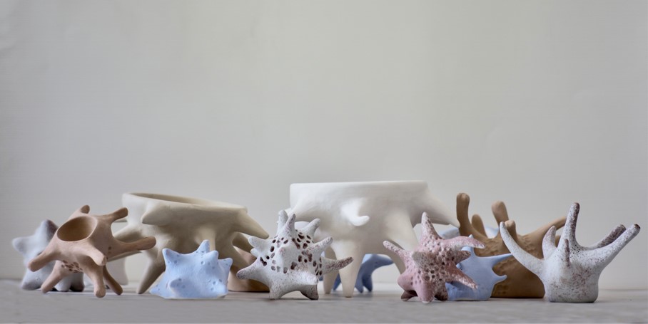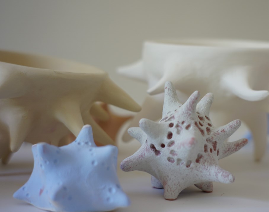 创作说明:《sensitive》系列作品采用景德镇的高白泥和浅黄陶进行手工捏制。创作灵感来源于触角,我尝试将情绪呈现在陶瓷作品当中,把流动变化定格在陶瓷作品中。在生活中,在所有琐屑中,在所有的情思流动里,灵魂生长延伸出了无数柔软的触角。