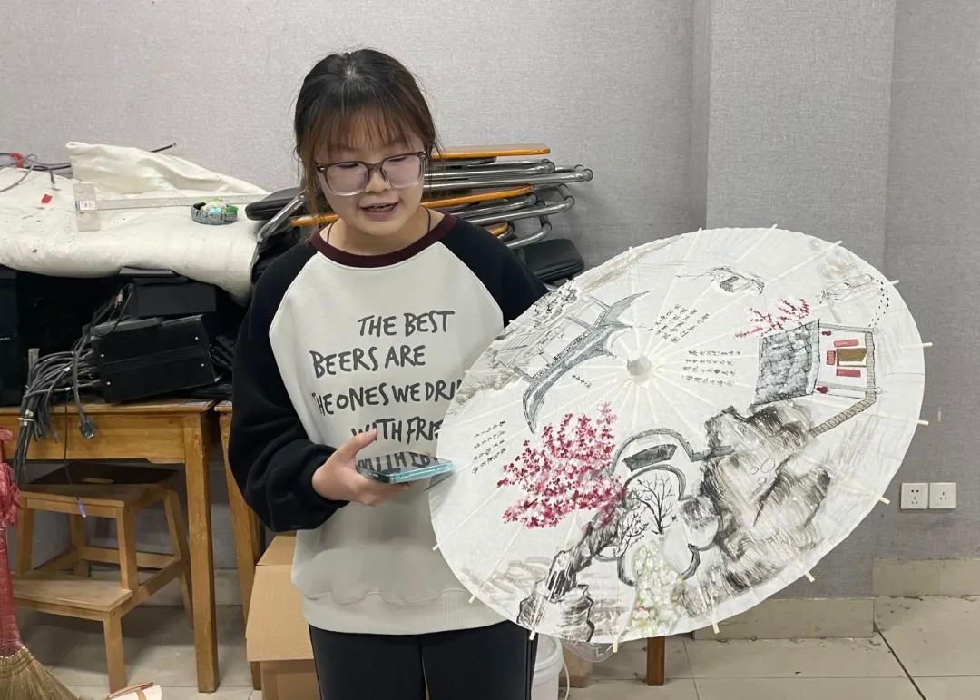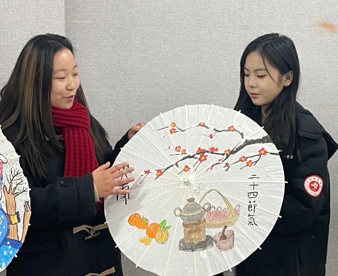 活动期间,同学们充分发挥想象力与创造力,将对大雪节气的感触融入到油纸伞的绘画中,以绘画的形式描绘大雪时节万物冬藏、肃静清冷的氛围,将大雪节气带给学生们的独特体验具象化。