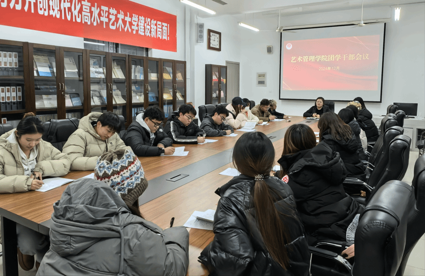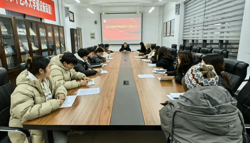 12月10日,艺术管理学院2024-2025第一学期团学干部会议在艺文楼会议室召开,会议由辅导员主持,10余名团学干部参加。