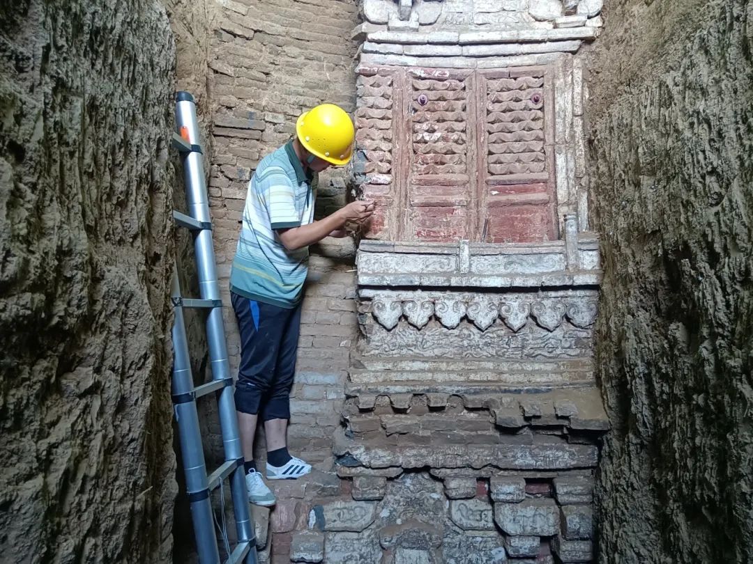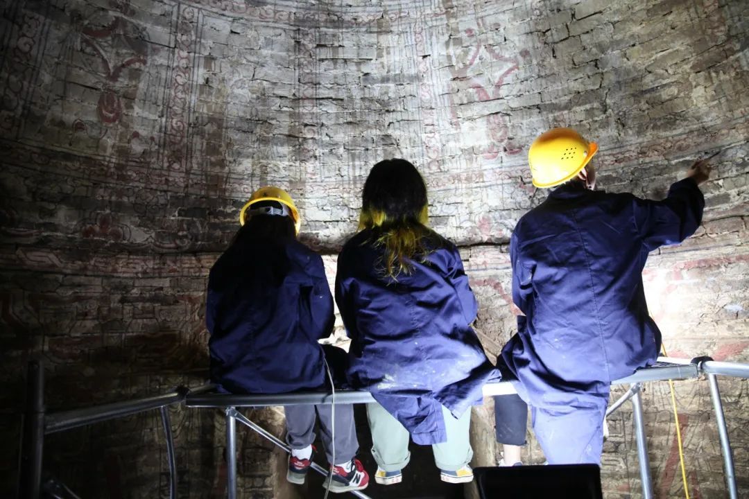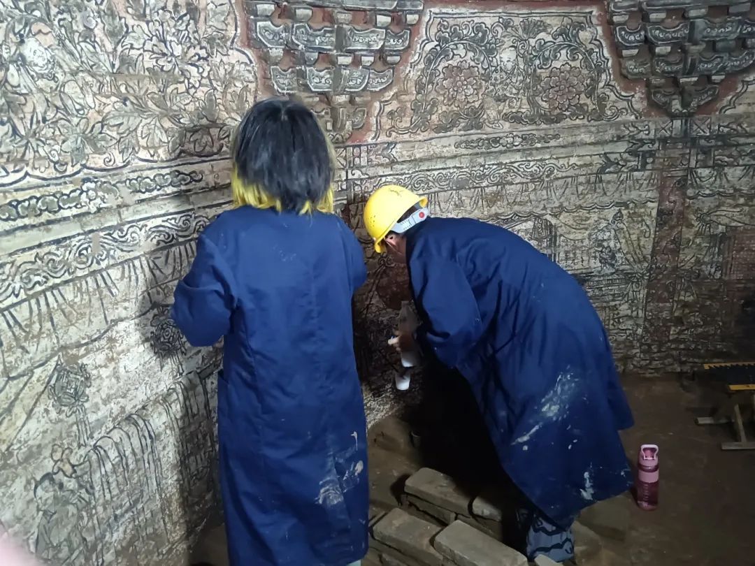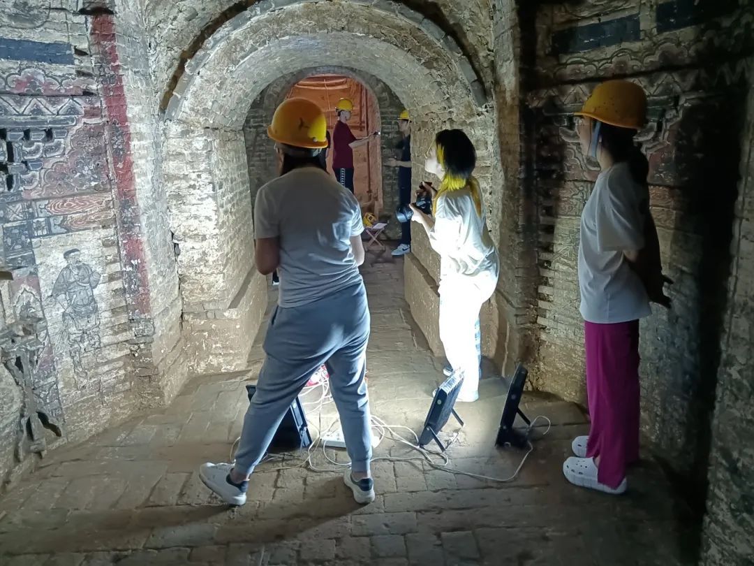 2023年6-8月,艺术管理学院仝艳锋教授率领文化遗产保护团队参与了张荣家族墓地三座元代墓葬的壁画保护工作。在对壁画保护过程中,艺术管理学院师生克服了天气炎热、墓室潮湿等困难,加班加点按时完成了壁画的起甲加固、颜料层脱落加固、裂隙灌浆修补加固、空鼓灌浆加固、酥碱粉化加固和地仗层脱落修补加固等保护工作,为张荣家族墓地后续的回填原址保护提供了保障。